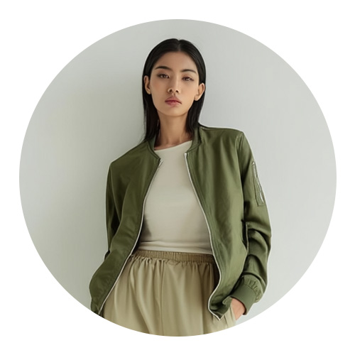 کاپشن بمبری سبز ارتشی زنانه با طراحی اسپرت و جیبهای کاربردی