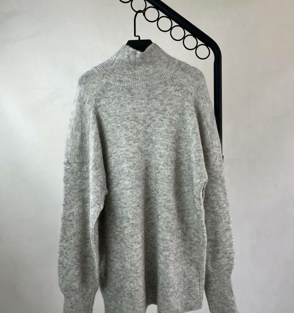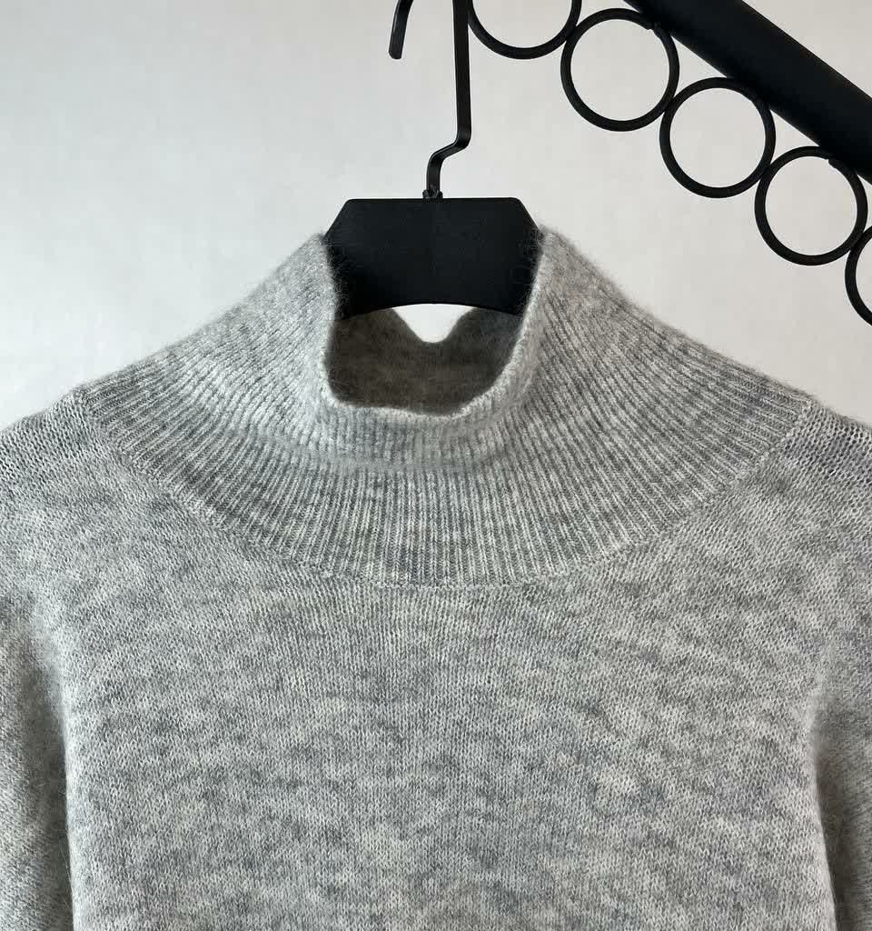 پلیور بافت زنانه یقه ایستاده با طراحی ساده و رنگ طوسی روشن ،مناسب استایل روزمره پاییز و زمستان ،نرم ،گرم و به راحتی قابل ست شدن.