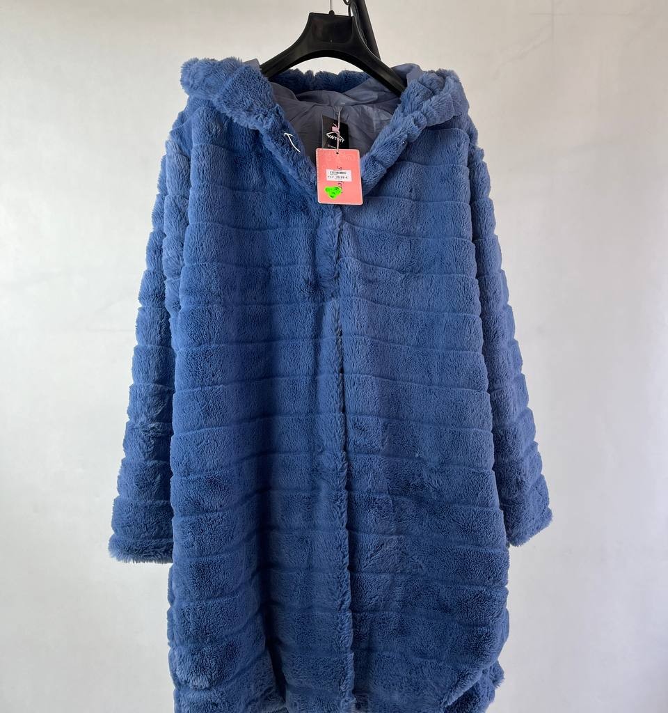 پالتو زنانه پشمی با کلاه رنگ آبی