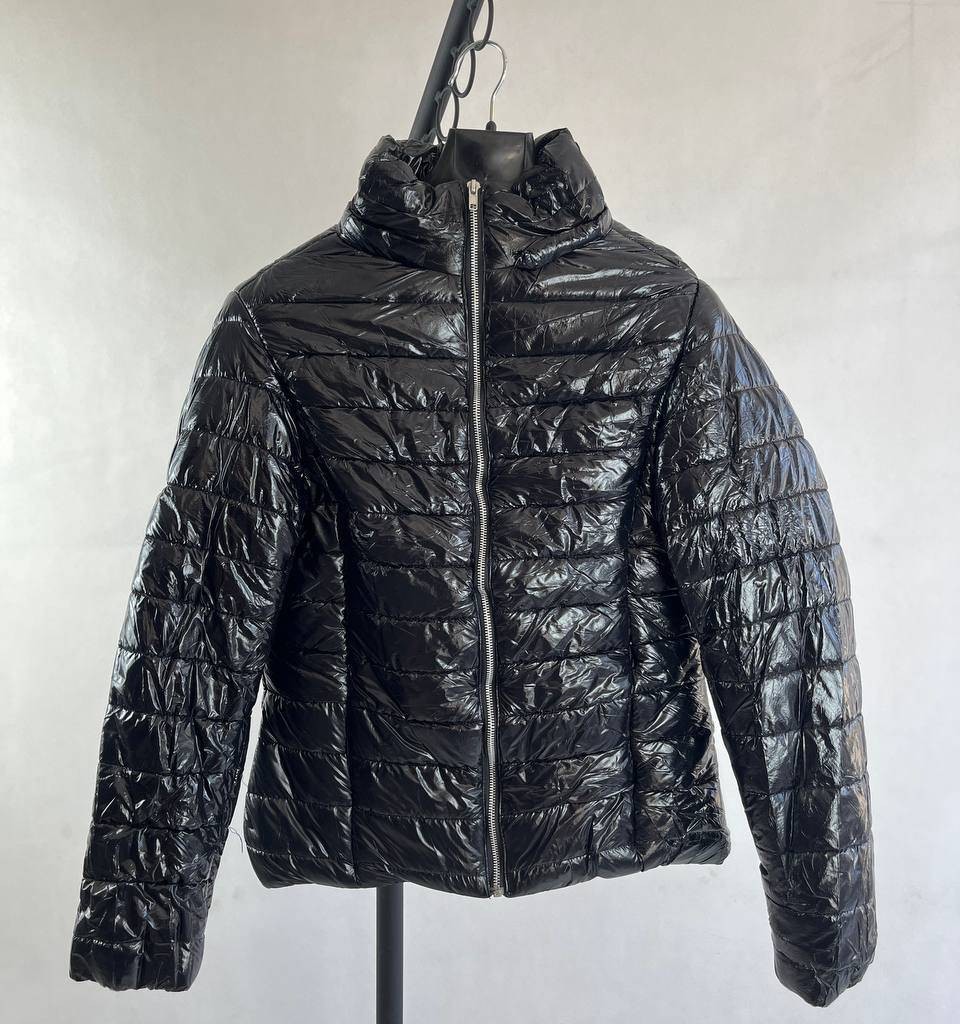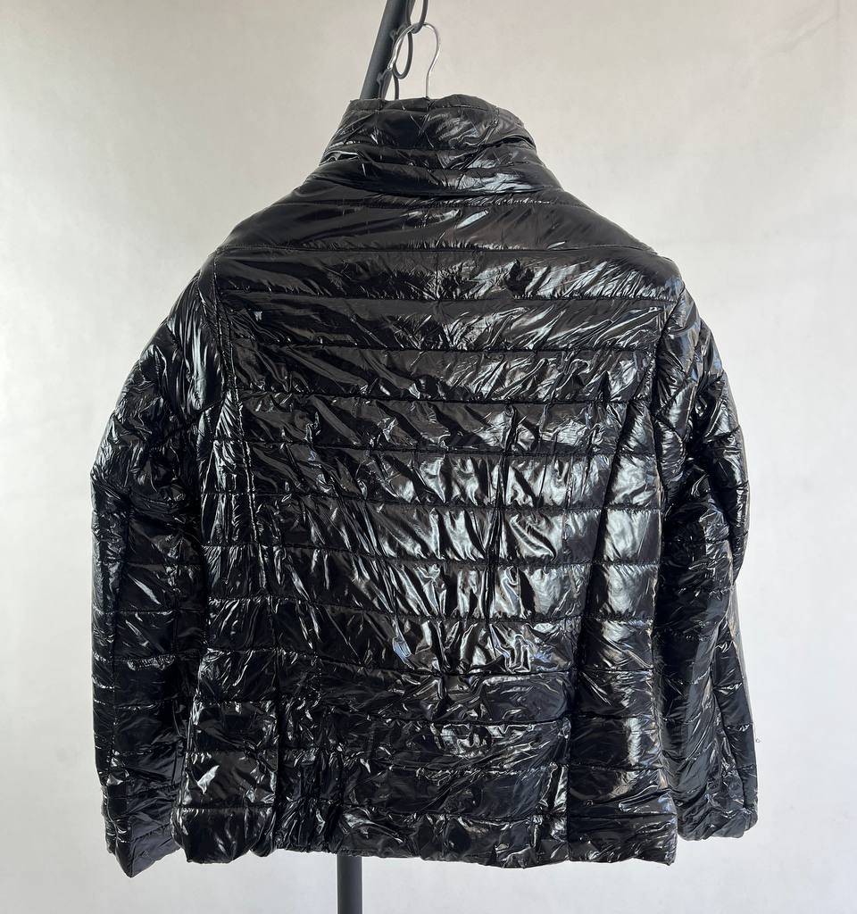 کاپشن زنانه مشکی کوتاه براق با طراحی مدرن و راحت