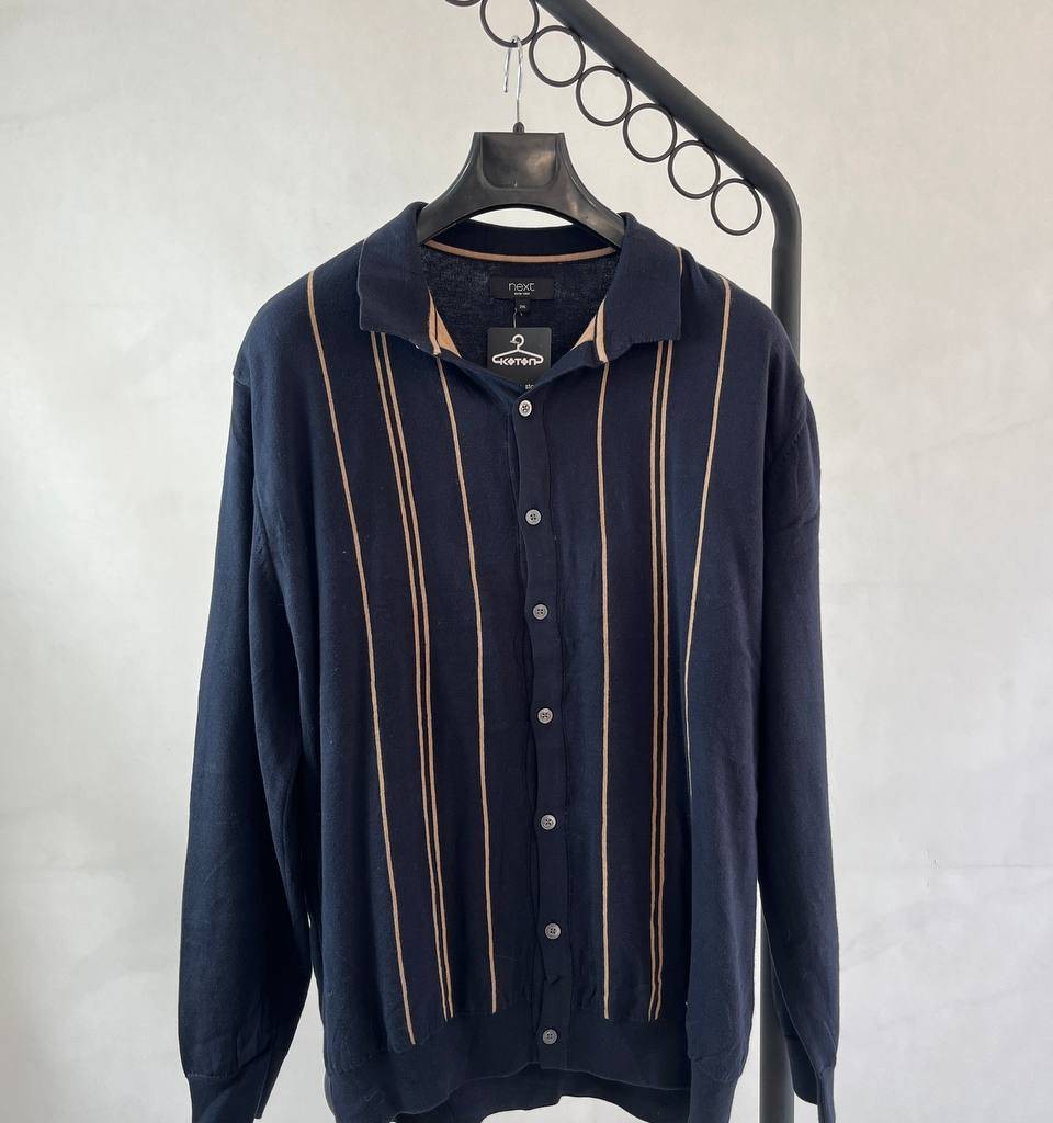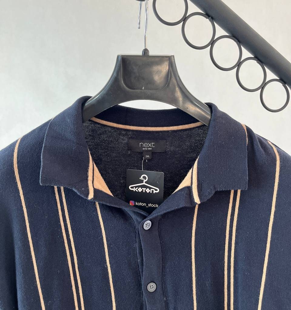 پیراهن بافت مردانه راهراه، رنگ سرمهای و کرم برندnexc