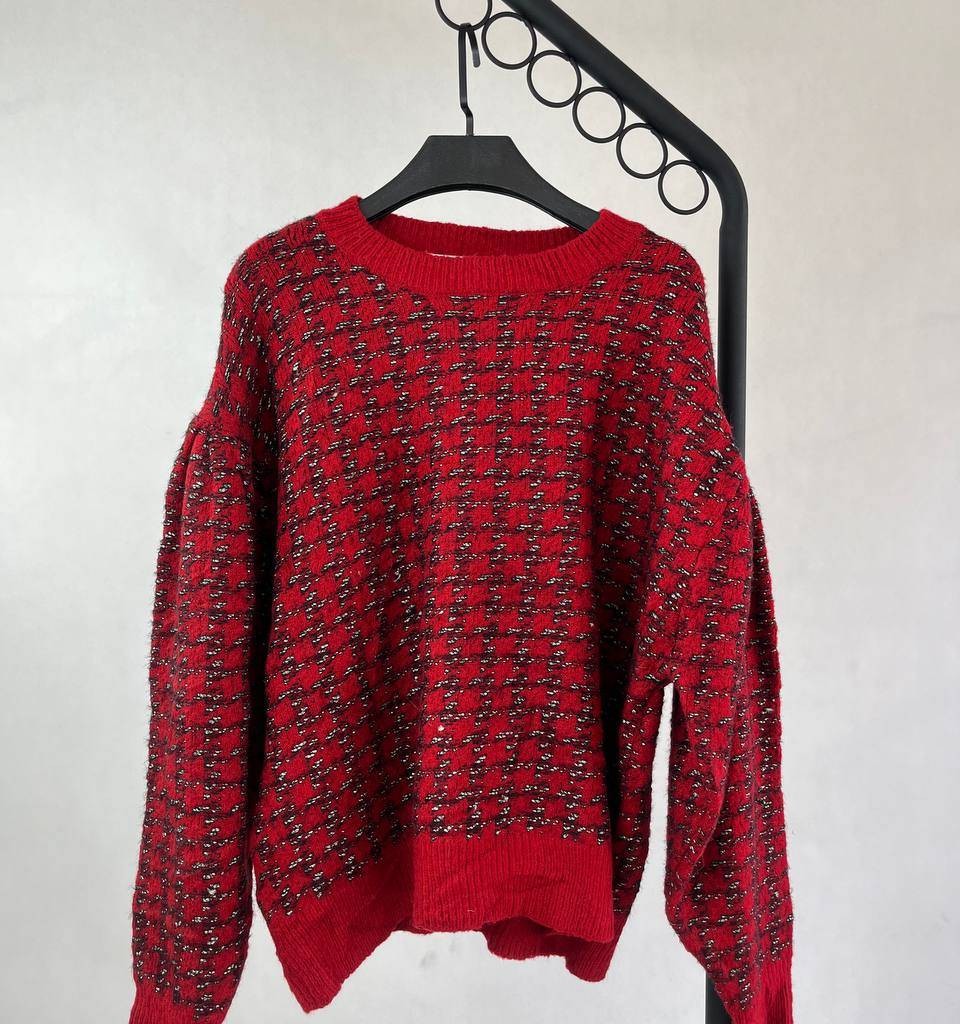 پولوشرت زنانه بافت قرمز رنگ شاد و متفاوت