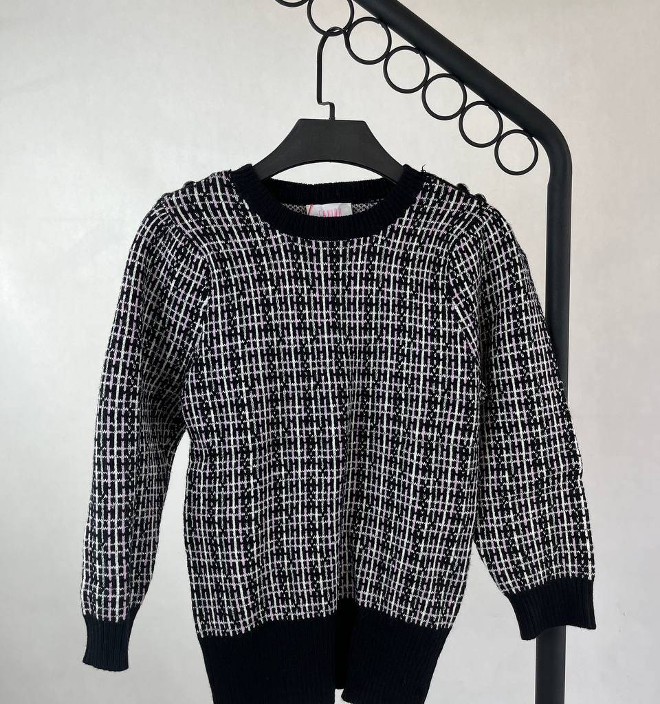 پولوشرت زنانه مشکی و سفید بافت زیگزاگ