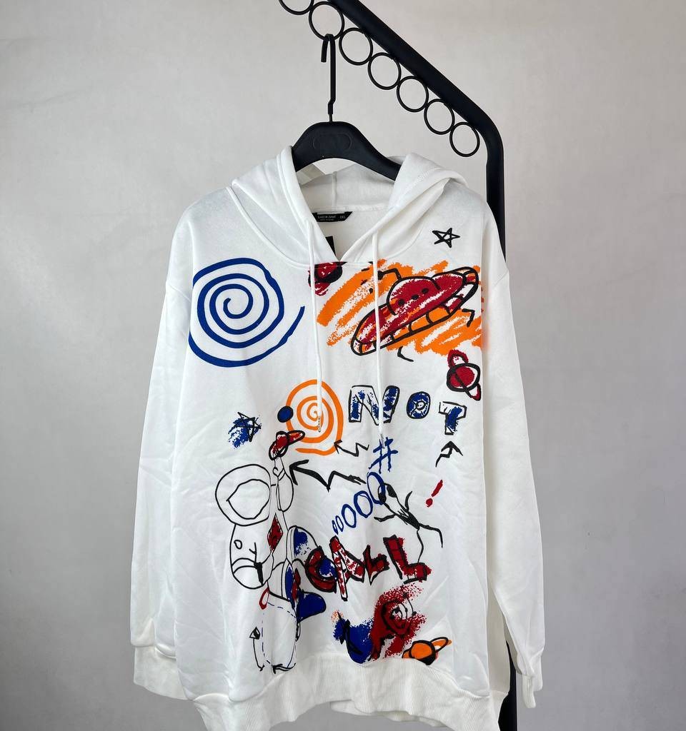 هودی سفید گرافیکی - طراحی هنری و مدرن