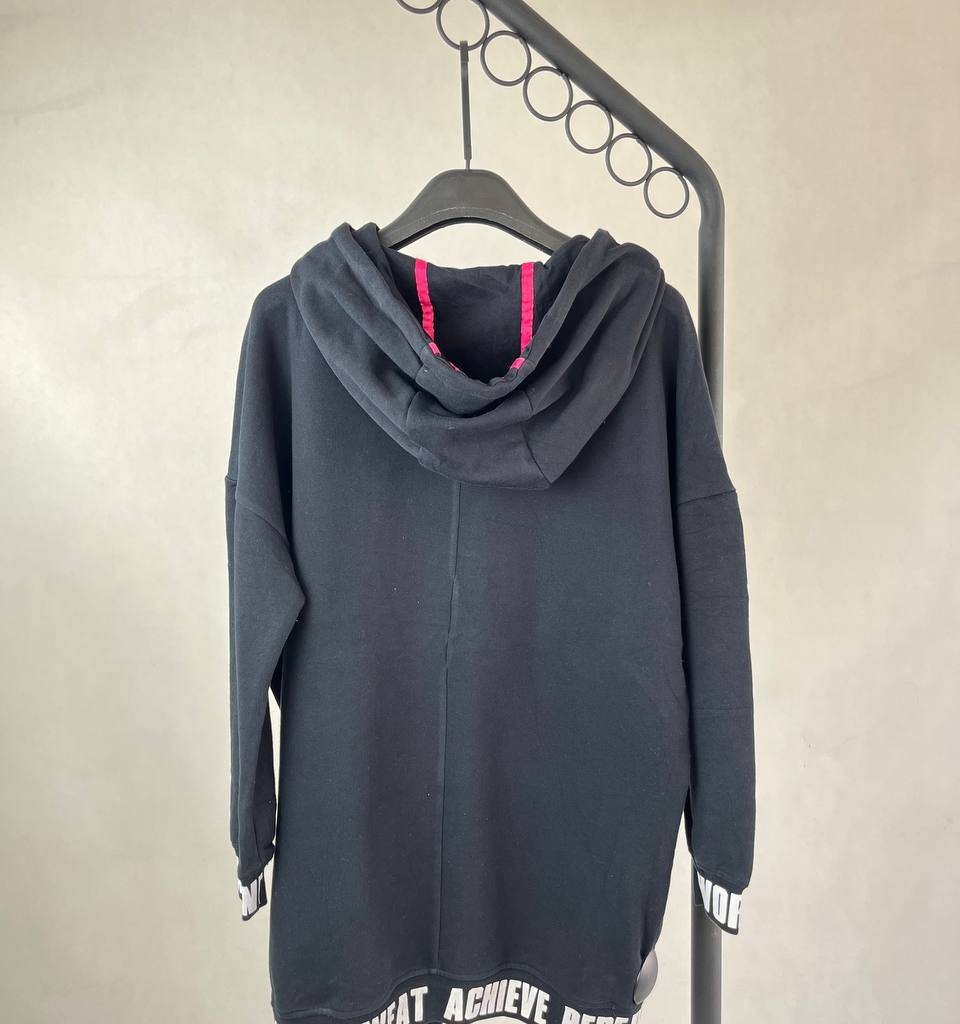 سویشرت مشکی با نوشته "WORK SWEAT ACHIEVE REPEAT"