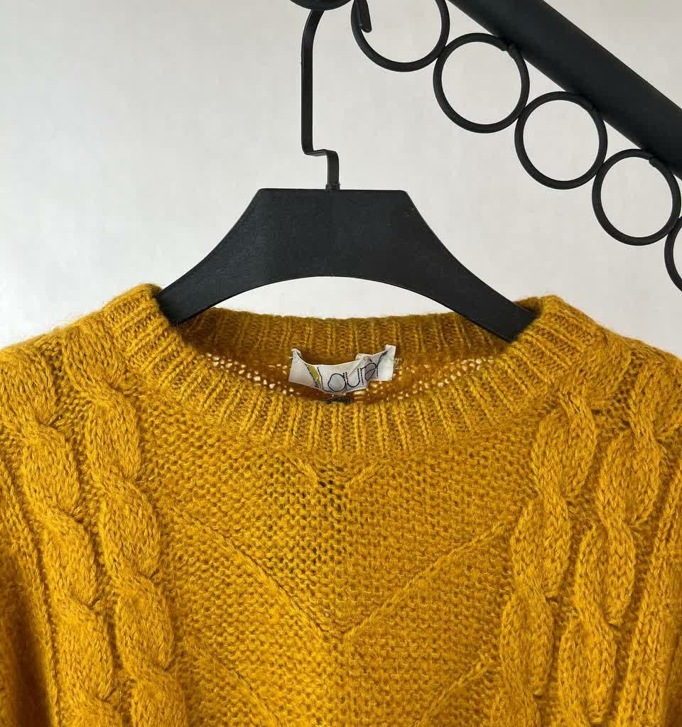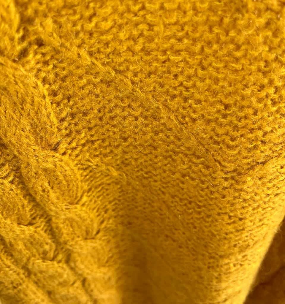 سویشرت بافت زنانه به رنگ خردلی ،با طرح بافت برجسته و جزئیات کلاسیک ،انتخابی شیک و گرم برای استفاده روزمره در فصول سرد سال است فرم آزاد و بافت نرم آن راحتی بالایی ایحجاد می کندو به راحتی با شلوار جین یا لگ ست می شود.