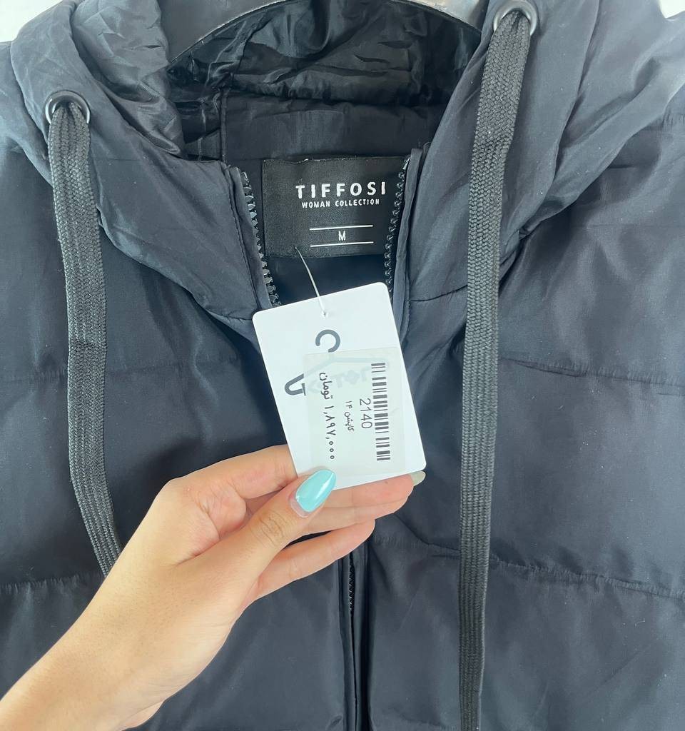 جلیقه پفی مردانه مشکی کلاه دار برند TIFFOSI