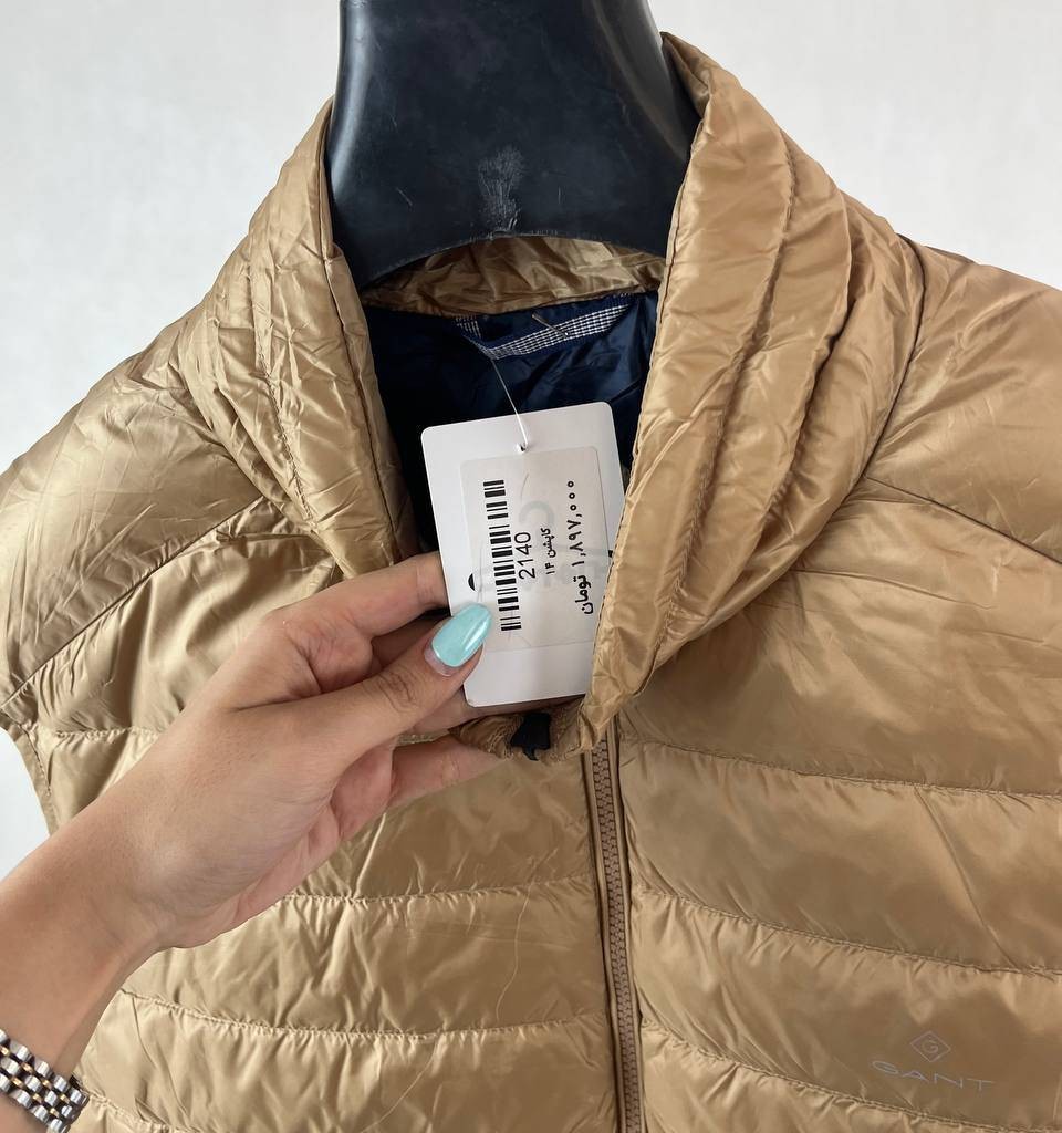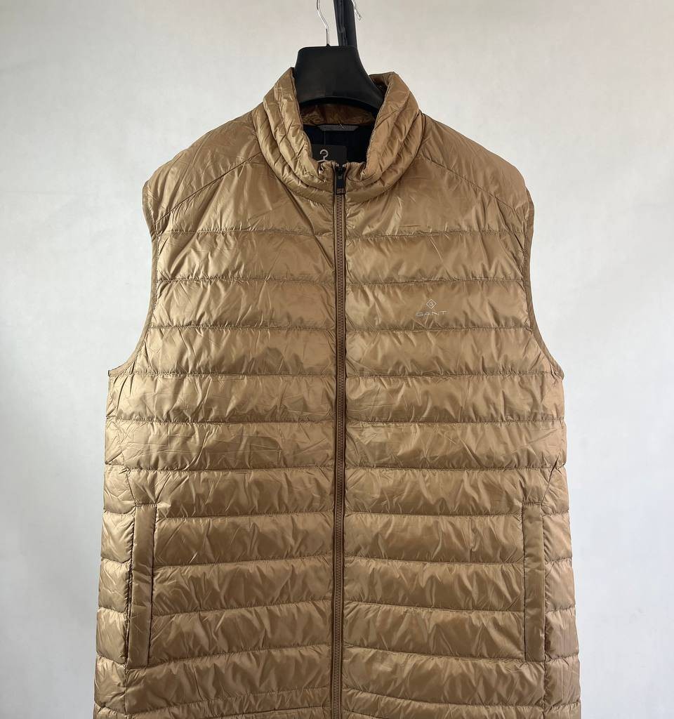 جلیقه مردانه طلایی پفی سبک زیپ‌دار برند GANT