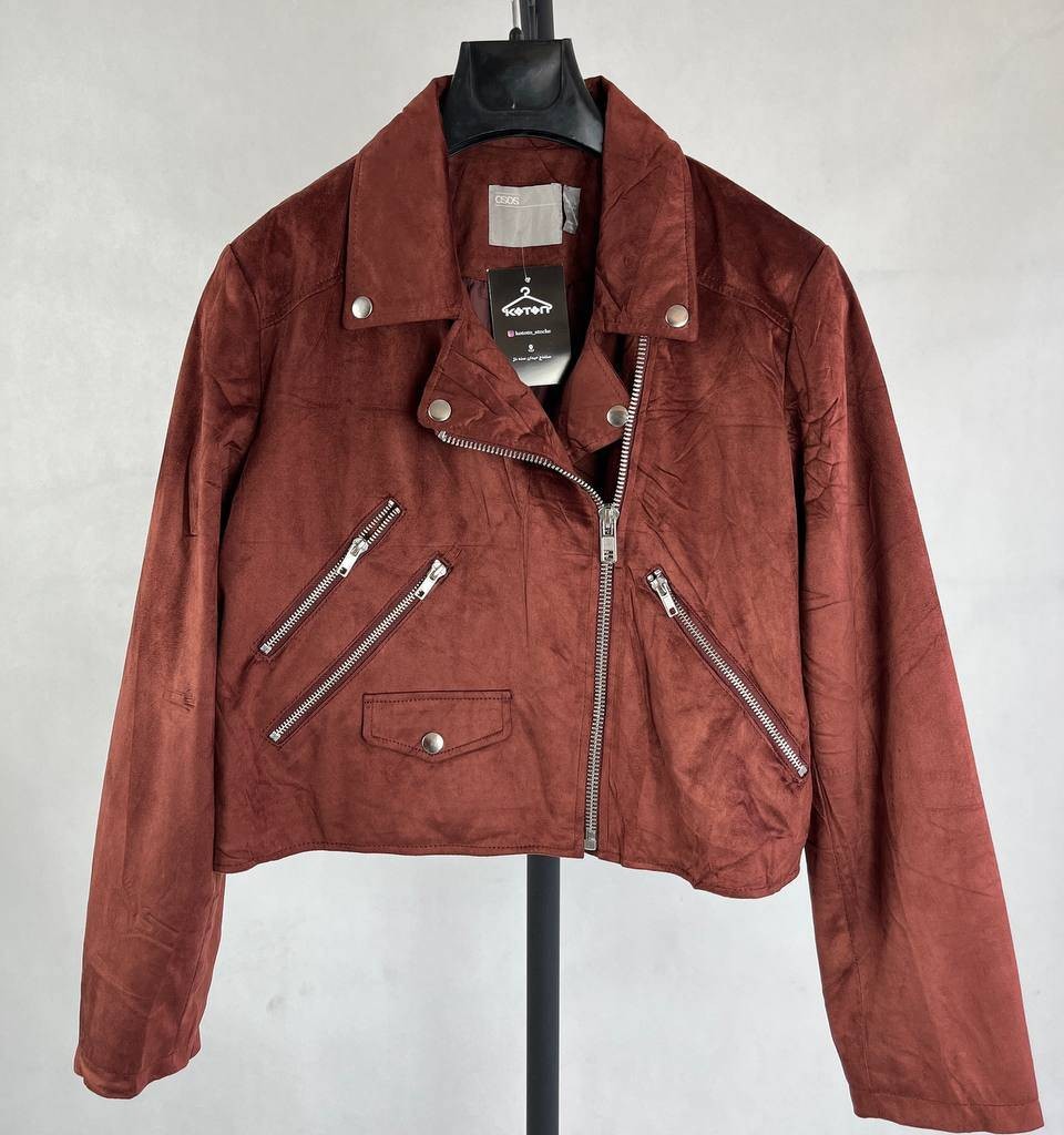 کاپشن زنانه مخمل قرمز با زیپ های دکوری برند ASOS