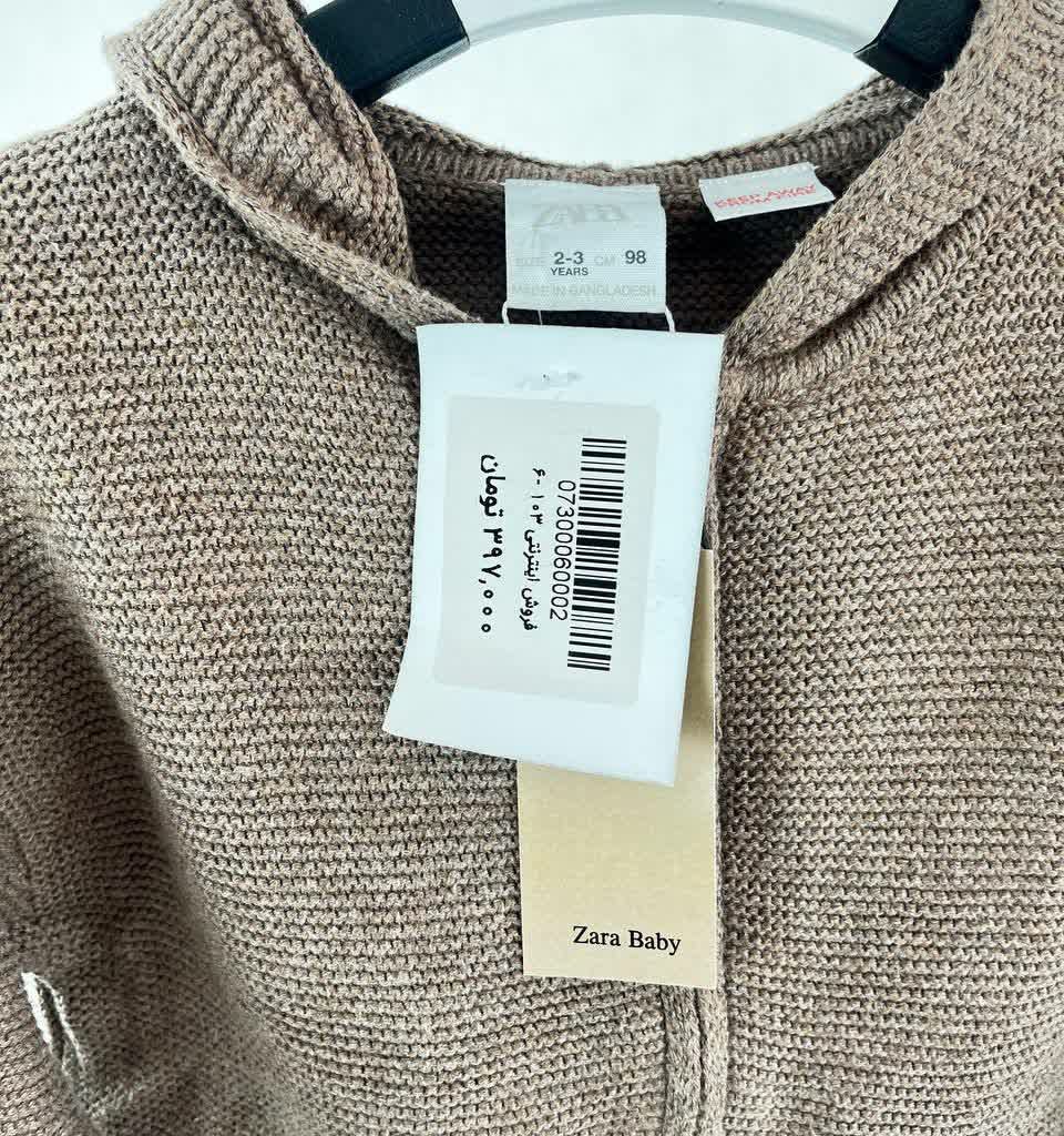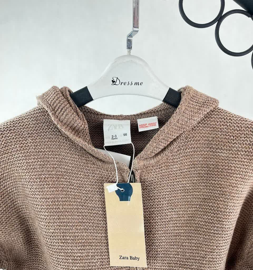 هودی بافت زیپدار بچگانه قهوهای نسکافهای برند zara