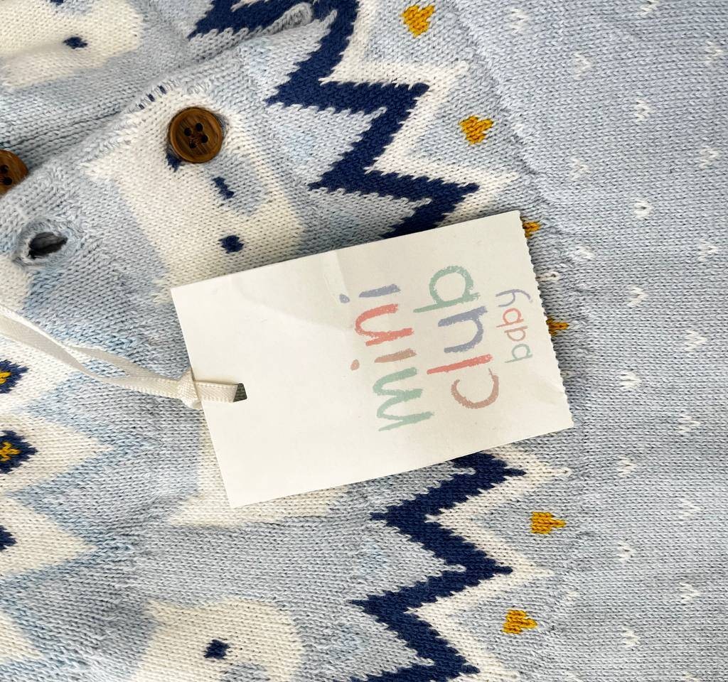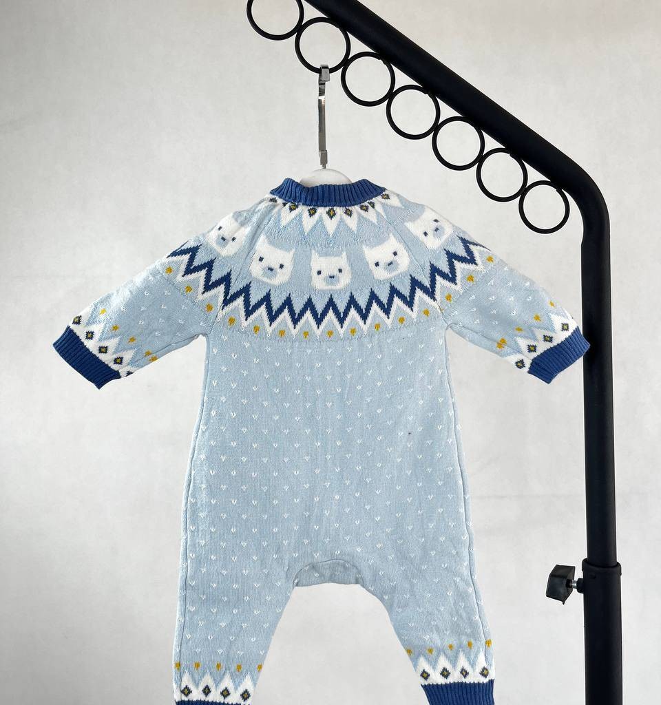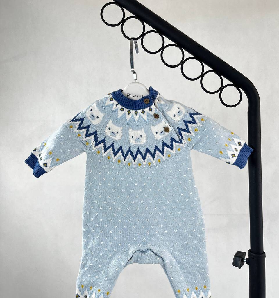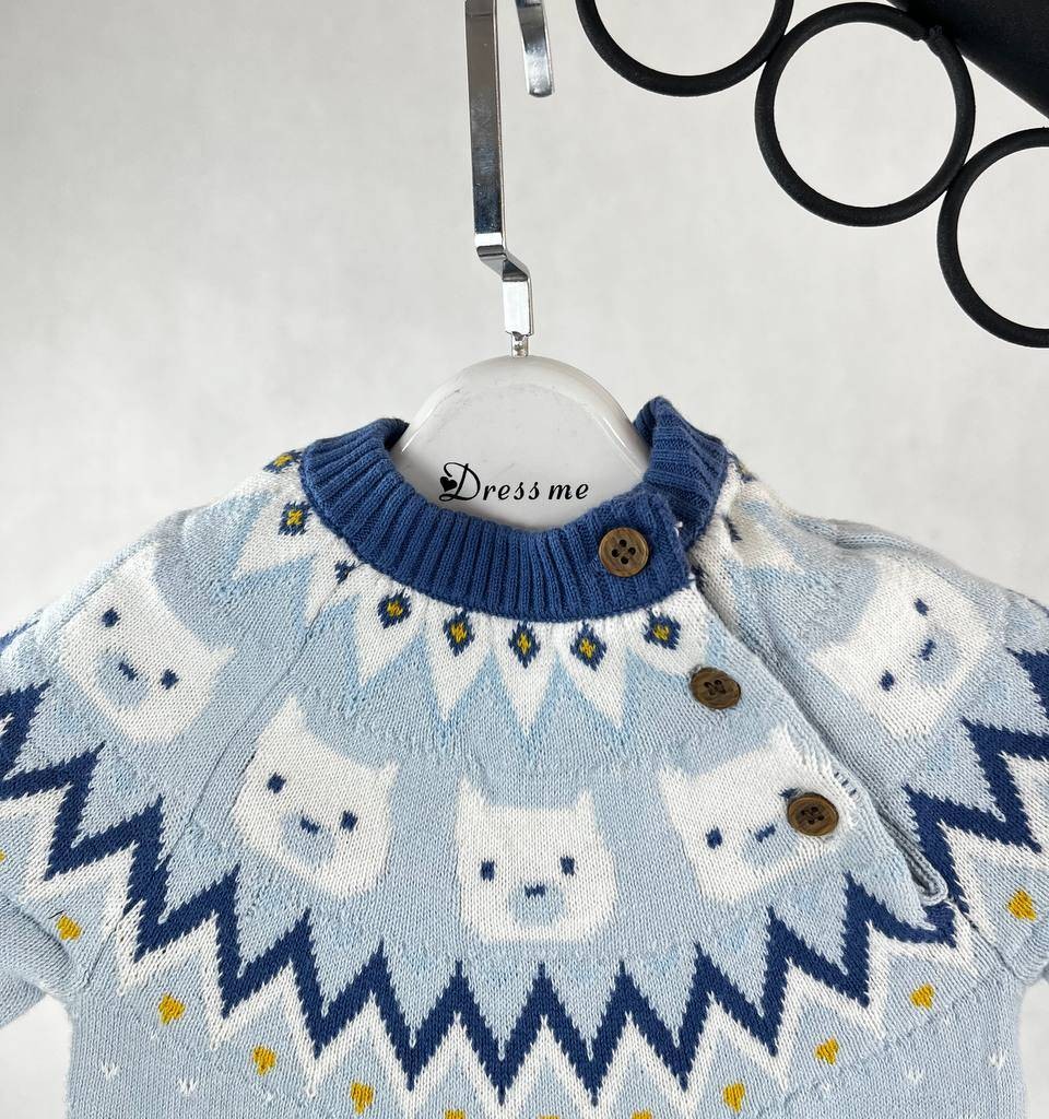 سرهمی بافت زمستونی نوزاد آبی ملایم طرح اسکاندیناوی
