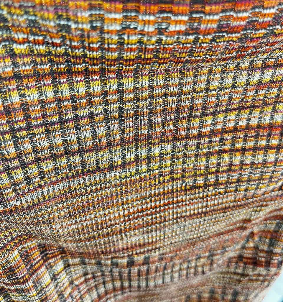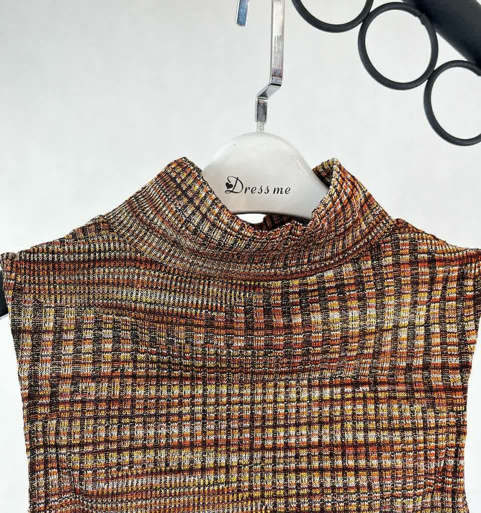 ●طرح پارچه: بافت چهارخانه ریز ترکیبی قهوهای، طلایی و مسی