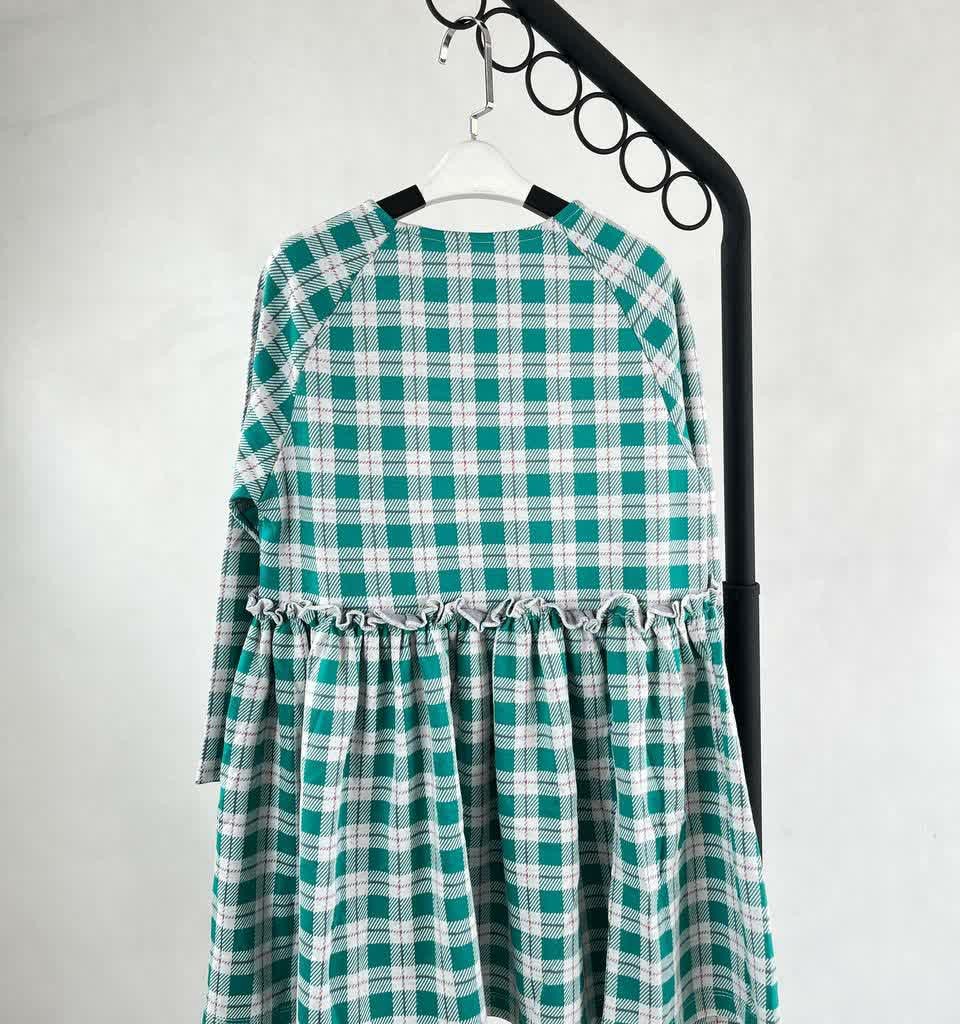 پیراهن بچگانه چهارخونه سبز و سفید