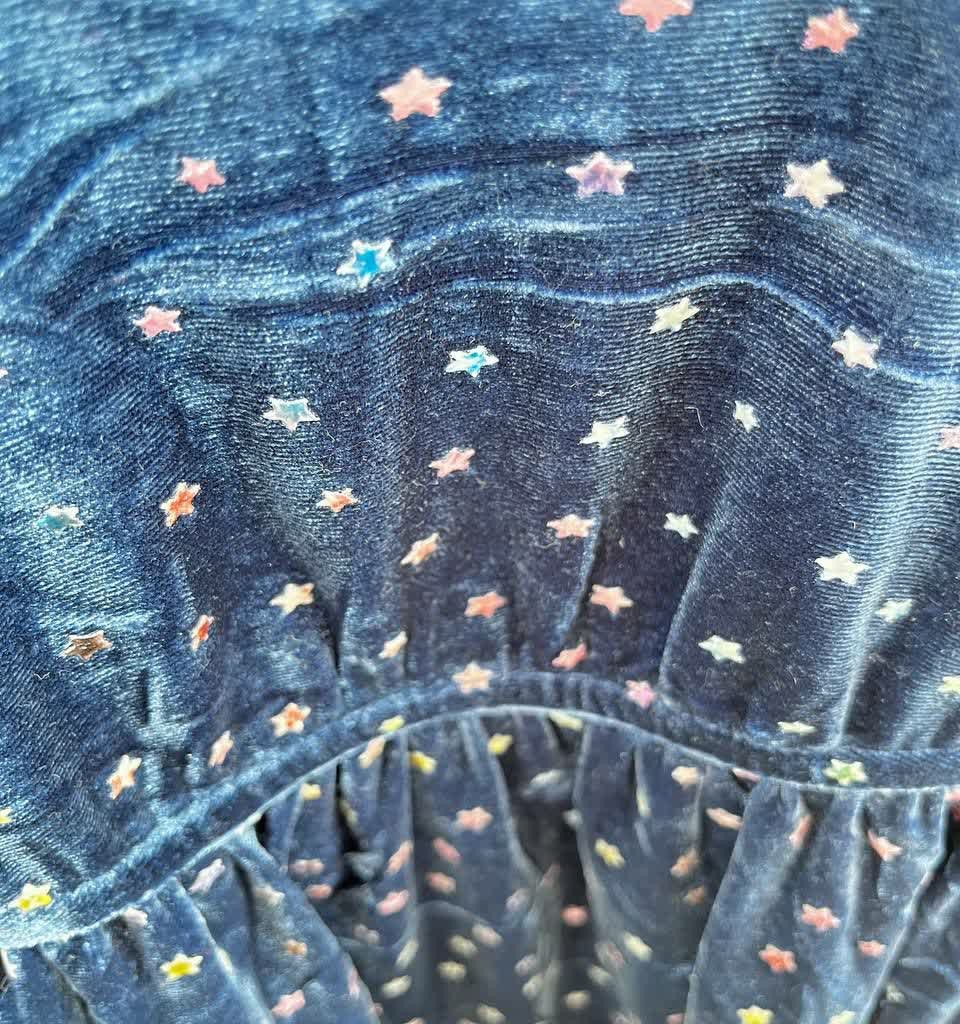 پیراهن دخترانه مخمل کبریتی ،رنگ سورمه ای (آبی نفتی )طرح ستاره یکی از خاص ترین مدل های لباس پاییزه کودک است که طراحی آستین بلند و دامن چین دار،این لباس را به گزینه ایی ایده آل برای عکس برداری، مهمانی و استفاده روزمره تبدیل کرده است.