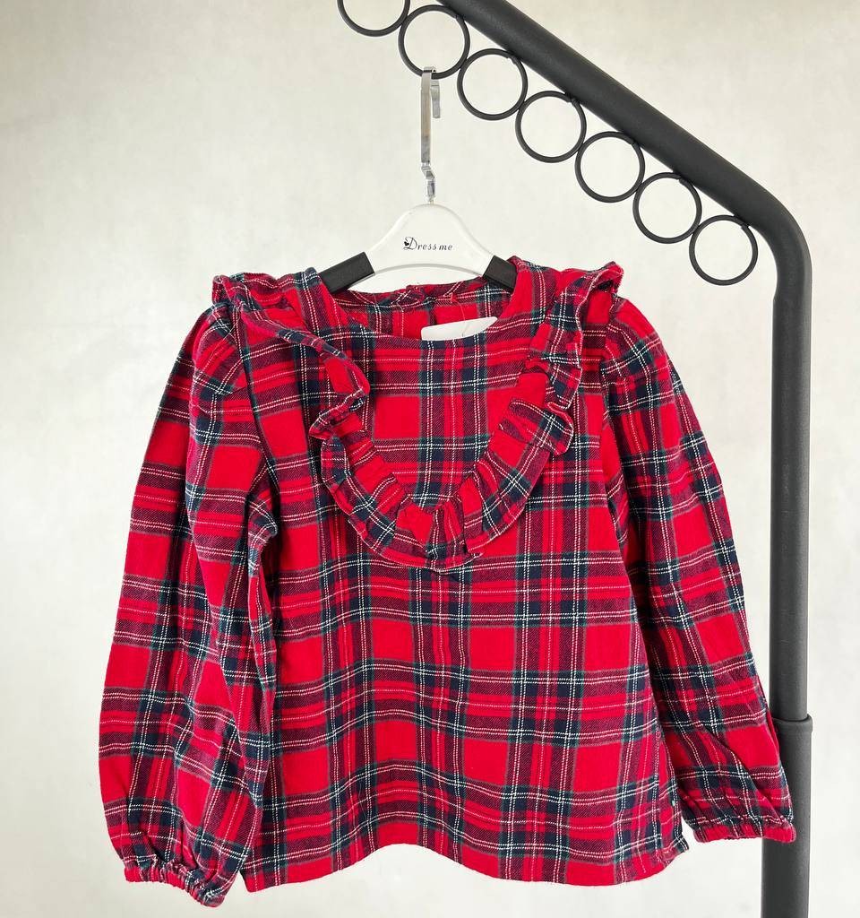 بلوز بچگانه چهارخونه قرمز با چین در یقه