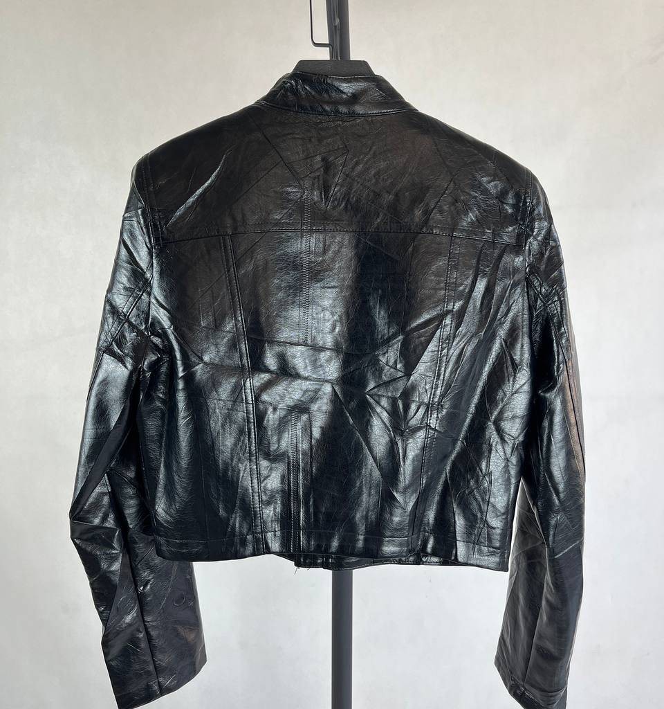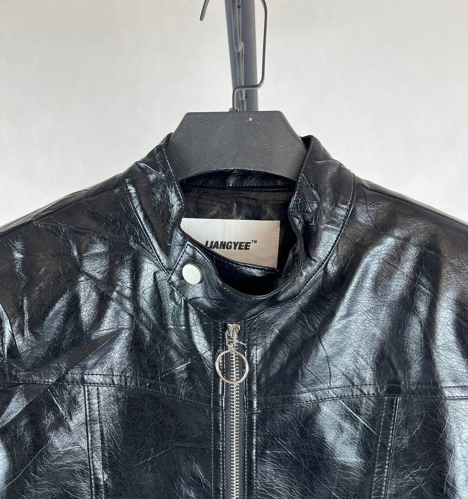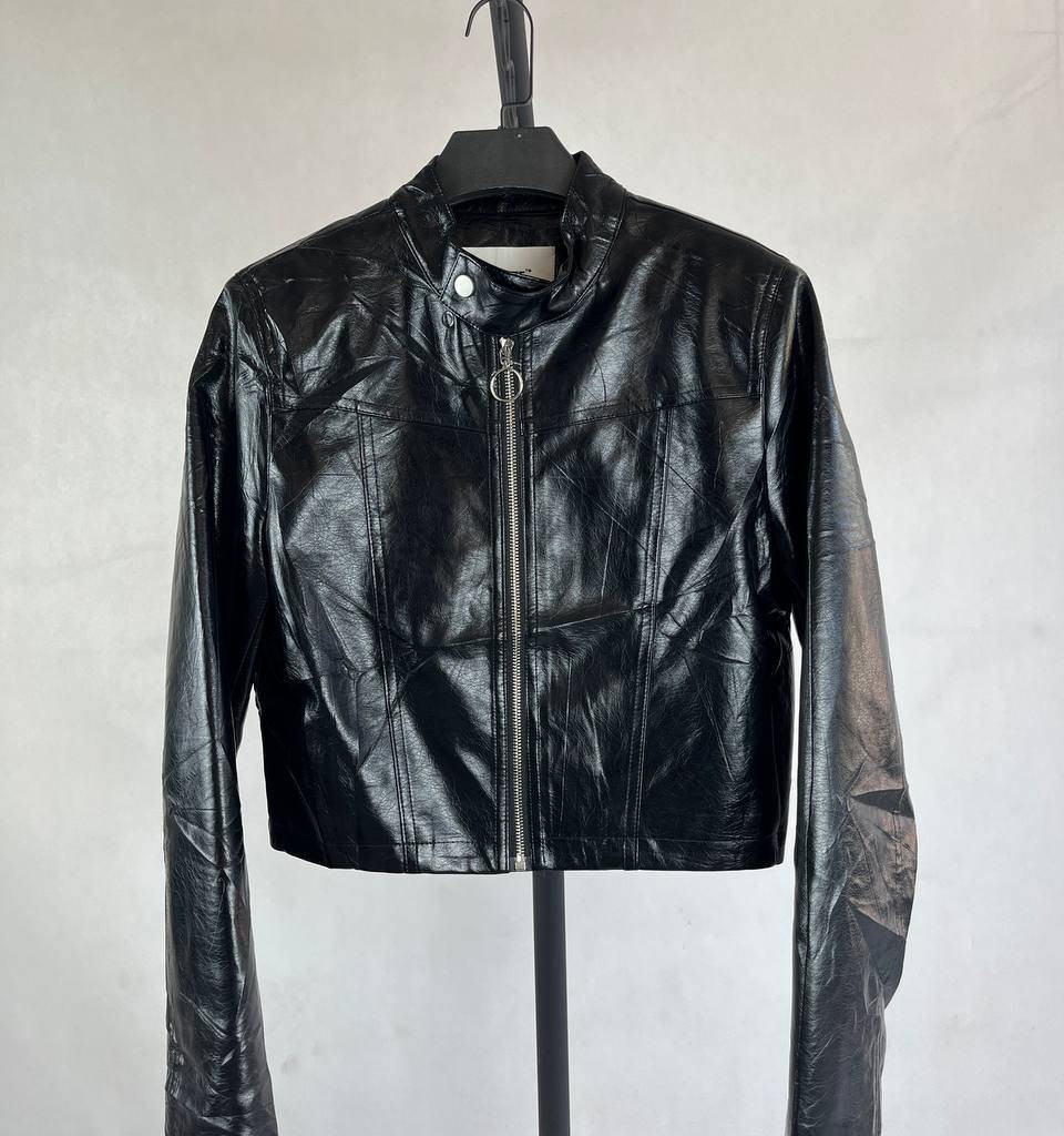 کاپشن زنانه چرم مشکی کوتاه برند LIANGYEE