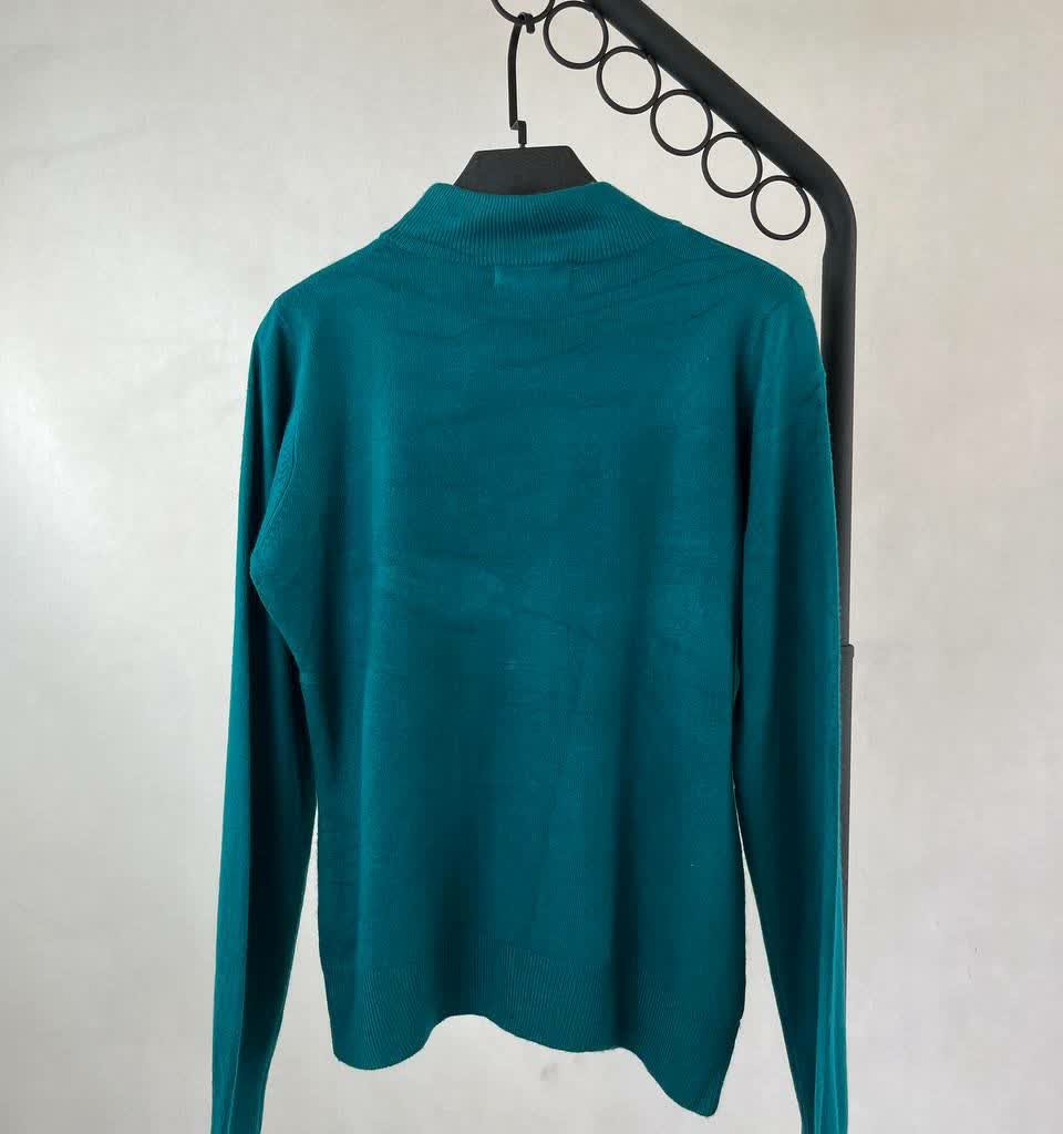 پلیور بافت زنانه یقه ایستاده کوتاه با آستین بلند و طراحی ساده،مناسب استفاده روزمره در فصل های سرد سال.