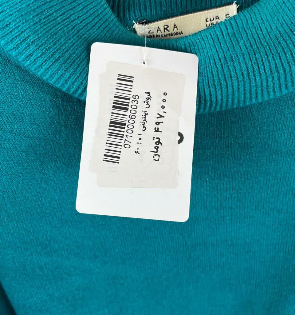 بافت زنانه سبز آبی با یقه ایستاده برند ZARA